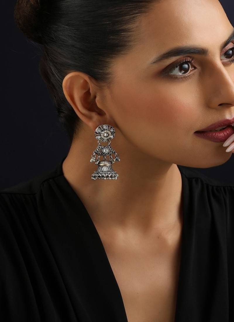 Grace Your Ears With The Elegant Charm Of These Silver-Plated Kundan Jhumkas. The Brilliant Shine Of The Silver Provides A Stunning, Contemporary Backdrop For The Traditional Sparkle Of Meticulously Set Kundan Stones. These Jhumkas Offer A Perfect Blend Of Modern Sophistication And Classic Indian Design, Making Them A Versatile And Eye-Catching Accessory For Any Occasion