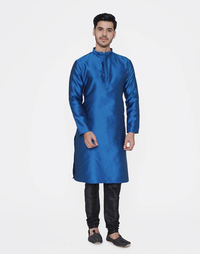 Tabard Blue Printed Jacquard Kurta For Men's