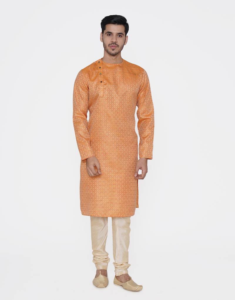 • Product Id : 3948283 • Package Details : 1 Kurta • Type : Kurta Pajama • Occasion : Festive • Work : Printed • Look : Traditional • Sleeve : Full Sleeve • Neck Style : Round Neck • Top Color : Orange • Top Fabric : Cotton • Stitching : Stitched Payments [+]