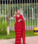 • Saree : Color- Red / Fabric- Georgette • Blouse : Color- Red / Fabric- Georgette Saree Details