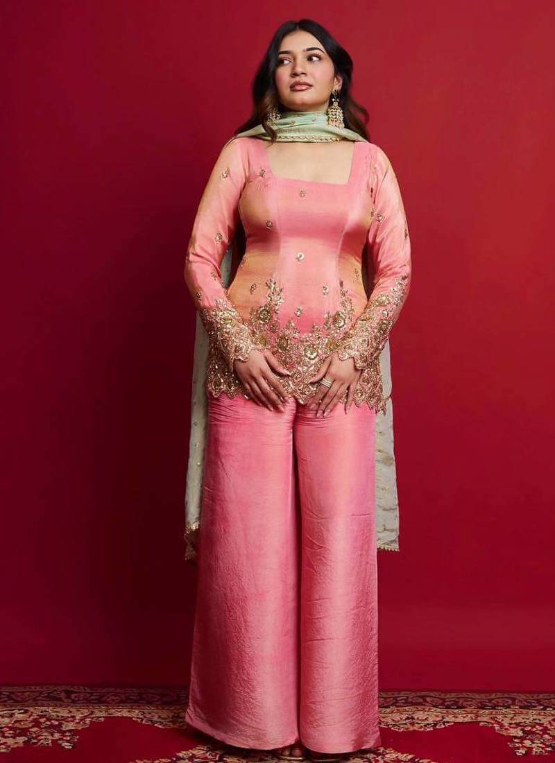 • Fabric : Silk • Color : Pink • Style : Palazzo • Color : Pink Dupatta Details