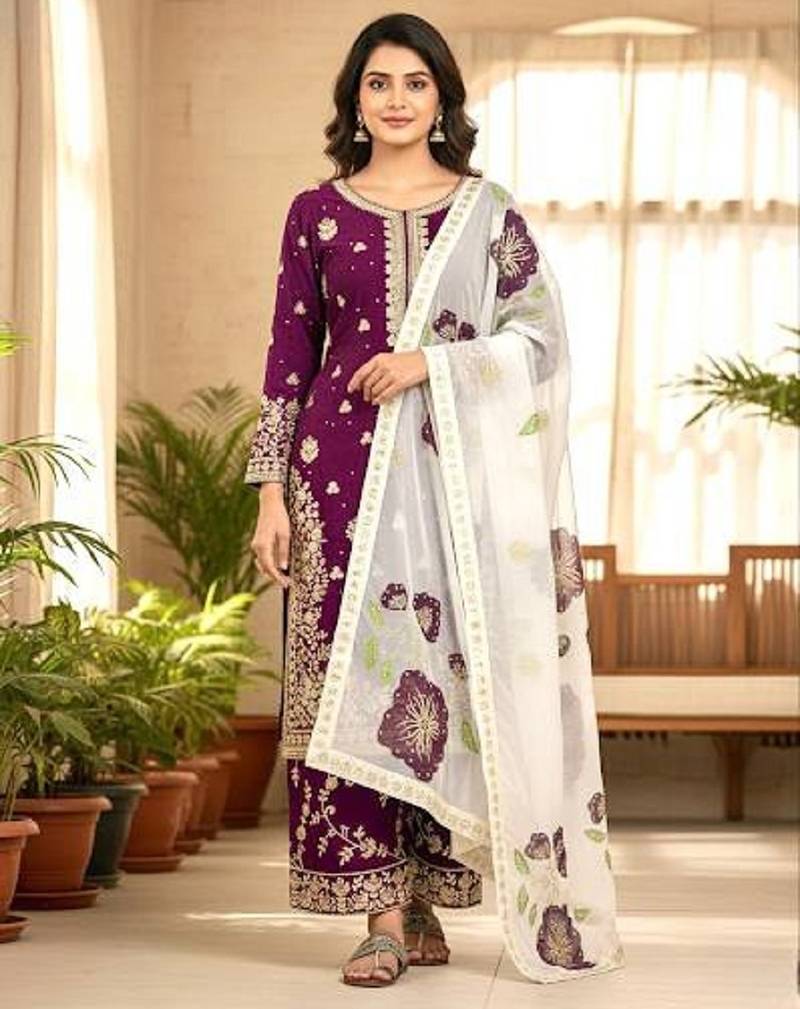 Wine Fendy Silk Embroidery Work Designer Party Wear Salwar Suit Stitched