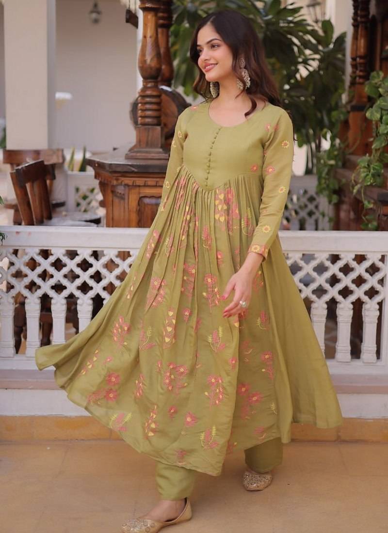• Product Id : 4758701 • Package Details : 1 Gown/1 Pant • Type : Anarkali Suit • Work : Embroidered • Type : Sequins Work • Look : Designer • Sleeve : Full Sleeve • Neck Style : Round Neck • Fabric : Silk • Color : Light Parrot Green • Stitching : Stitched General - Color and Texture may have slight variation. This happens because of photography.