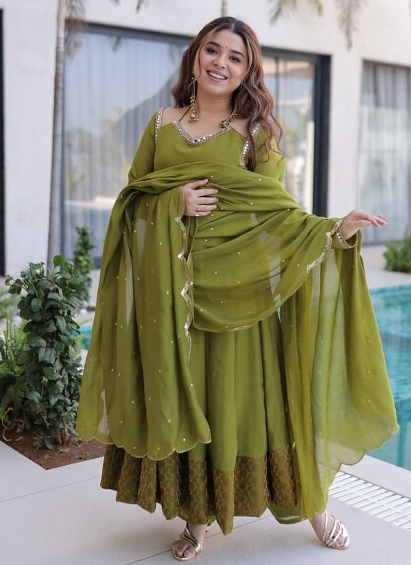 • Product Id : 4757654 • Package Details : 1 Top/1 Bottom/1 Dupatta • Type : Bollywood Salwar Kameez • Work : Embroidered • Type : Sequins Work • Look : Designer • Sleeve : Quarter Sleeve • Neck Style : V Neck • Fabric : Chanderi • Color : Green • Stitching : Stitched General - Color and Texture may have slight variation. This happens because of photography.