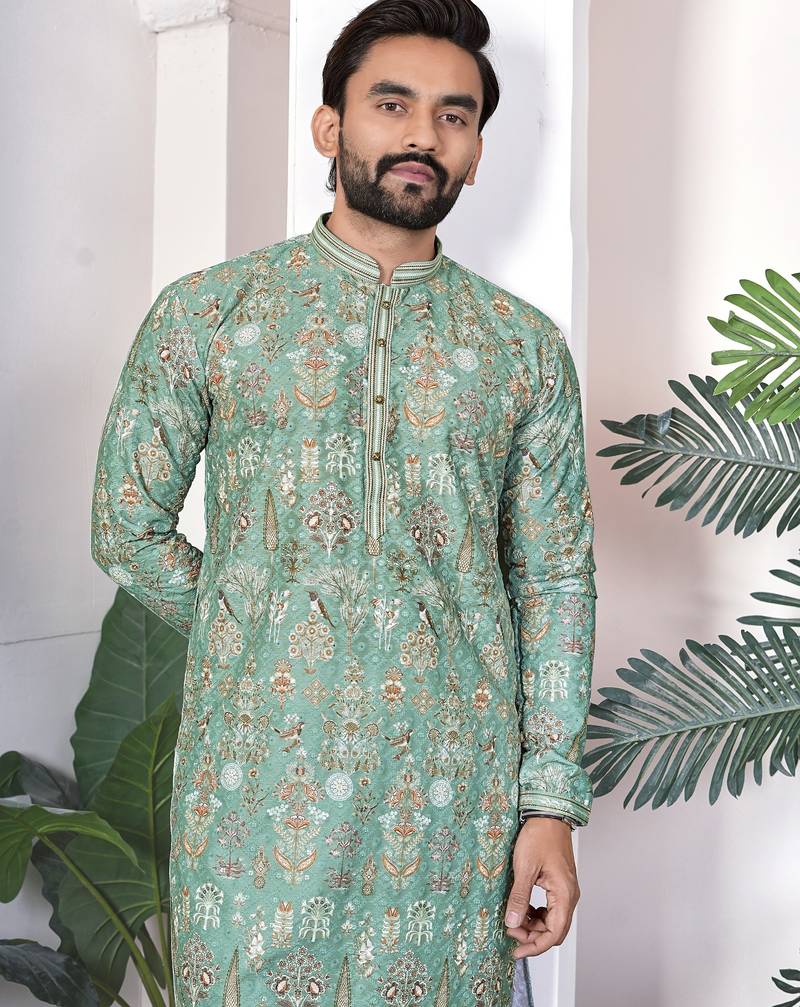 • Product Id : 4678932 • Package Details : 1 Kurta • Type : Kurta • Fabric : Cotton • Work : Printed • Type : Weaving Print • Look : Designer • Sleeve : Full Sleeve • Neck Style : Chinese Collar Kameez • Color : Green • Top Color : Green • Top Fabric : Cotton • Stitching : Stitched Payments [+]