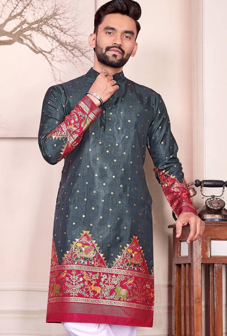 • Product Id : 4679243 • Package Details : 1 Kurta • Type : Kurta • Occasion : Wedding • Fabric : Silk • Work : Printed • Type : Patola Silk • Look : Designer • Sleeve : Full Sleeve • Neck Style : Chinese Collar Kameez • Color : Grey • Top Color : Grey • Top Fabric : Silk • Stitching : Stitched Payments [+]