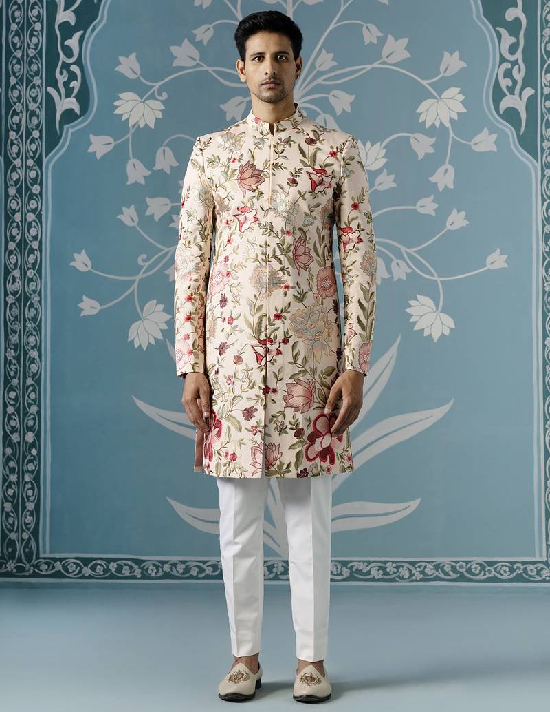 • Product Id : 4697419 • Package Details : 1 Sherwani / 1 Bottom • Type : Sherwani • Work : Printed • Look : Fashion • Sleeve : Full Sleeve • Color : Beige • Top Color : Beige • Top Fabric : Cotton • Stitching : Stitched Payments [+]