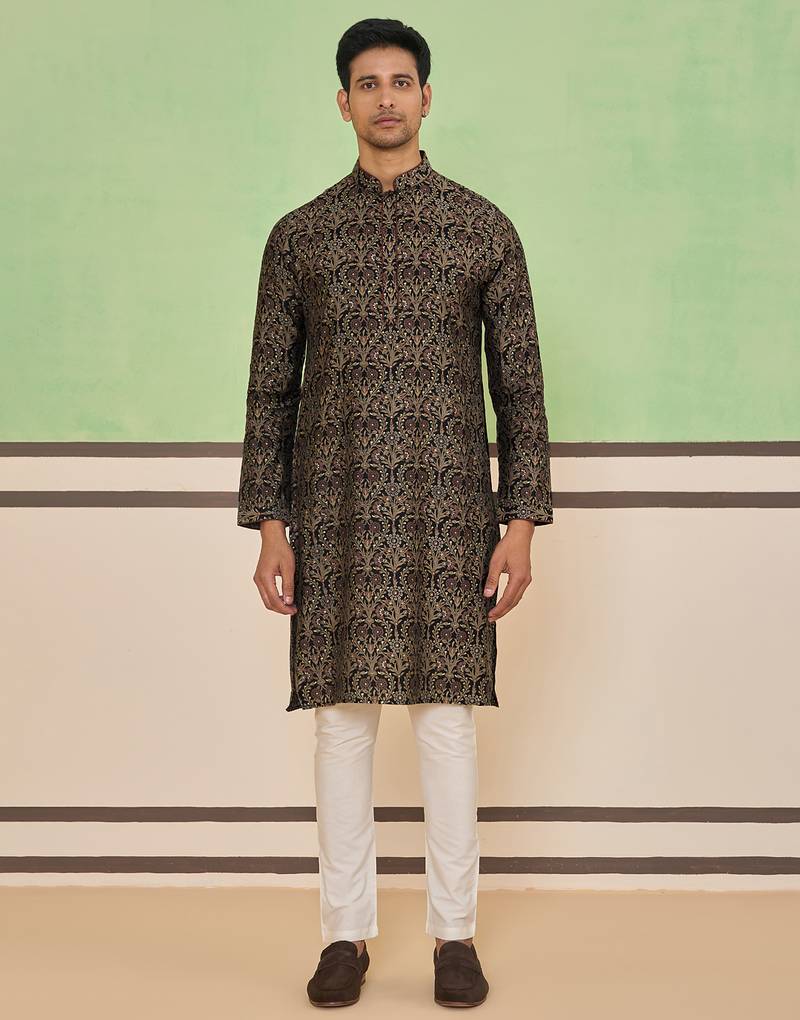 Black Cotton Silk Plain Kurta For Men's