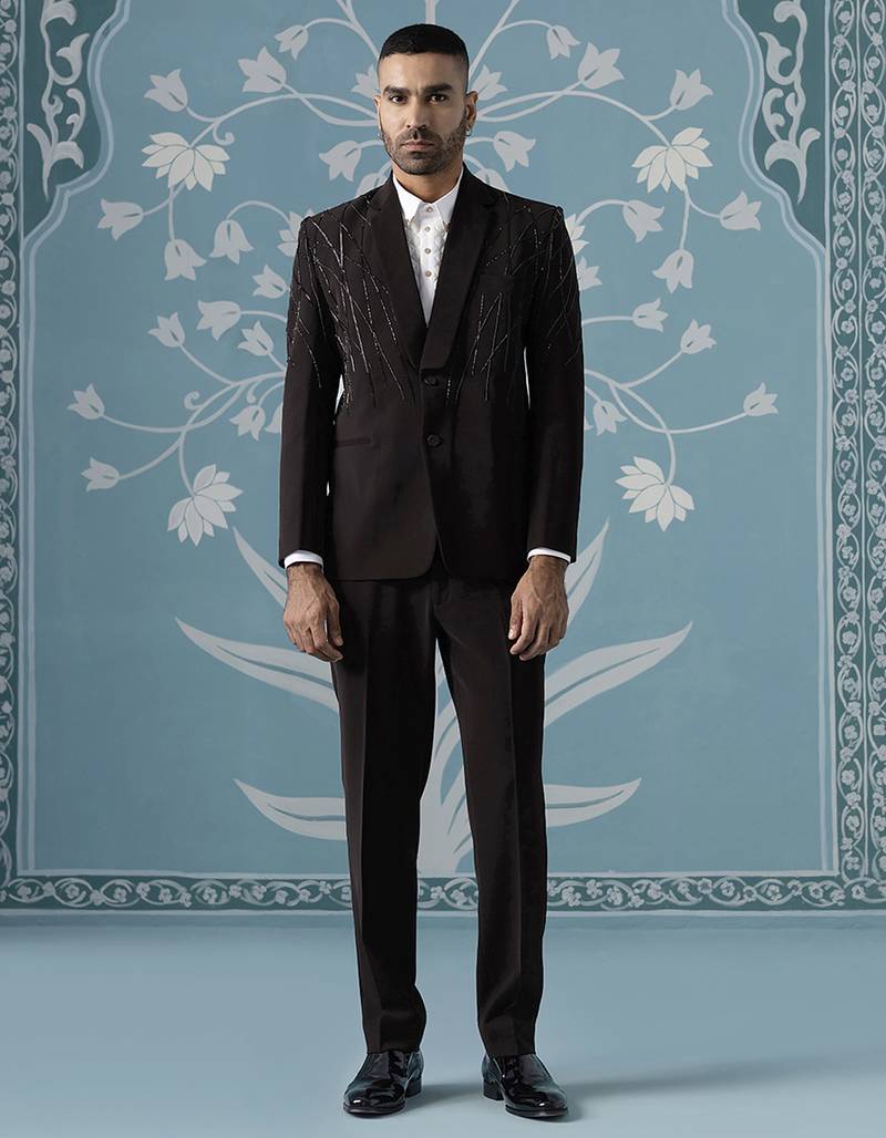 Brown Hand Embroidered Blazer Set