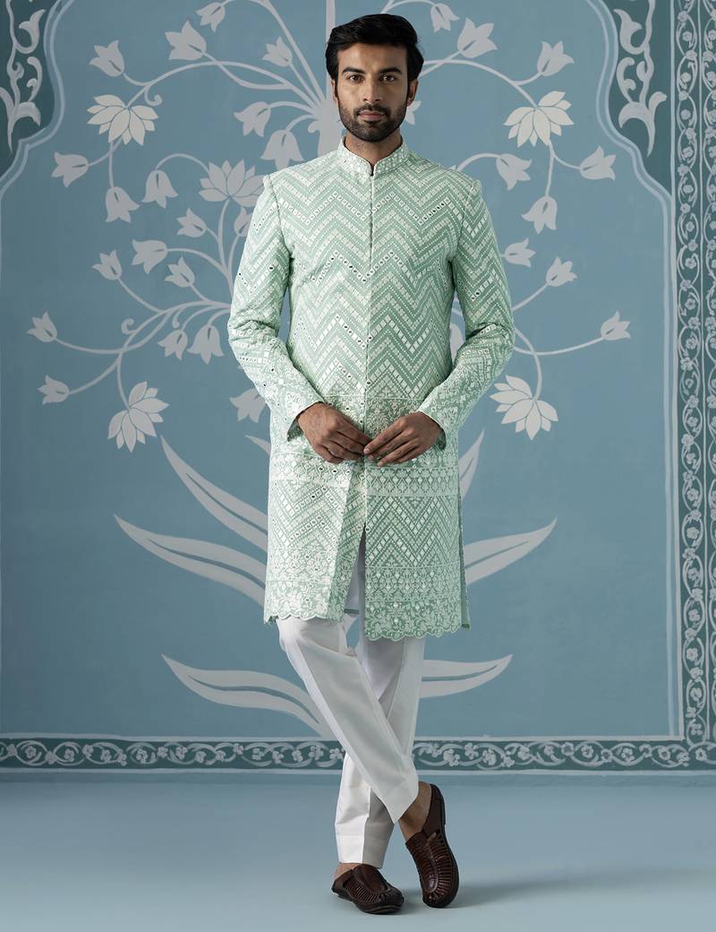 Green Embroidered Georgette Sherwani