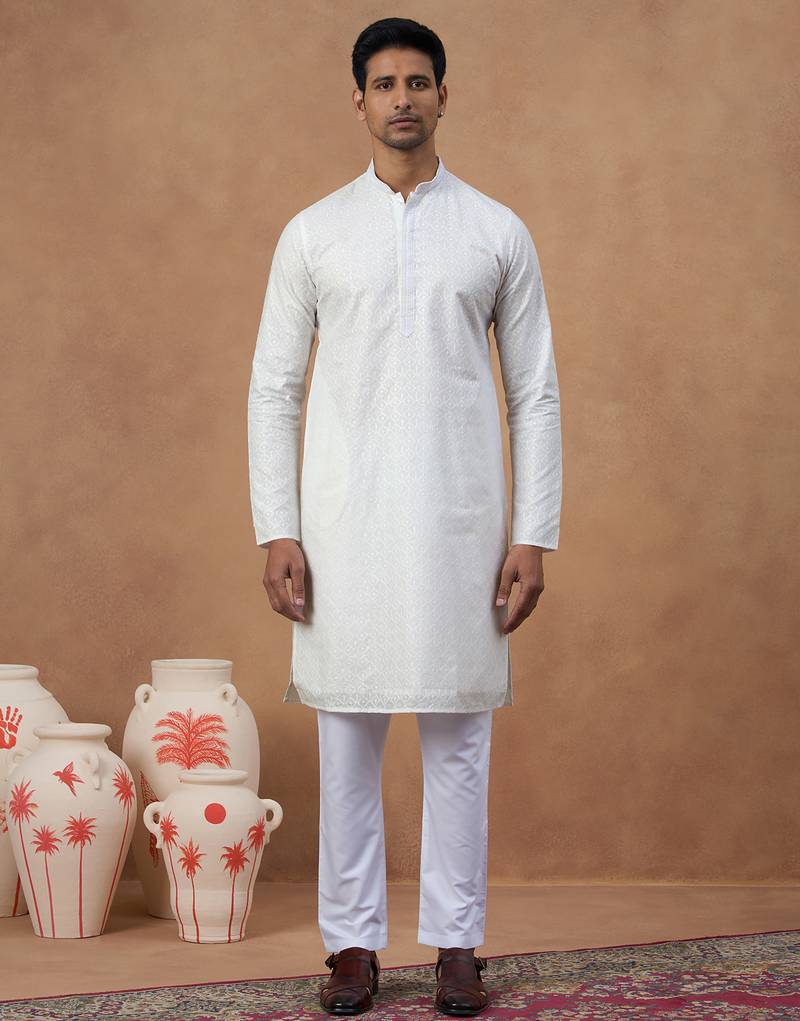 • Product Id : 4697611 • Package Details : 1 Kurta • Type : Kurta • Work : Plain • Look : Fashion • Sleeve : Full Sleeve • Color : White • Top Color : White • Top Fabric : Cotton Silk • Stitching : Stitched Payments [+]