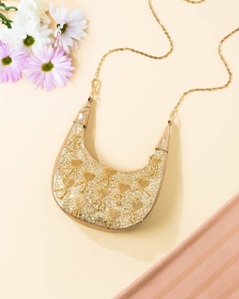 If you find the product for less we'll match it! Know MoreThis Gold Leather Sequin Embroidered Clutch Is A Glamorous And Stylish Accessory For Special Occasions. Crafted From Premium Leather, It Features Intricate Sequin Embroidery That Adds Sparkle And Sophistication. Compact Yet Functional, With A Secure Closure, It Is Perfect For Weddings, Parties, And Evening Events, Complementing Both Traditional And Contemporary Outfits.