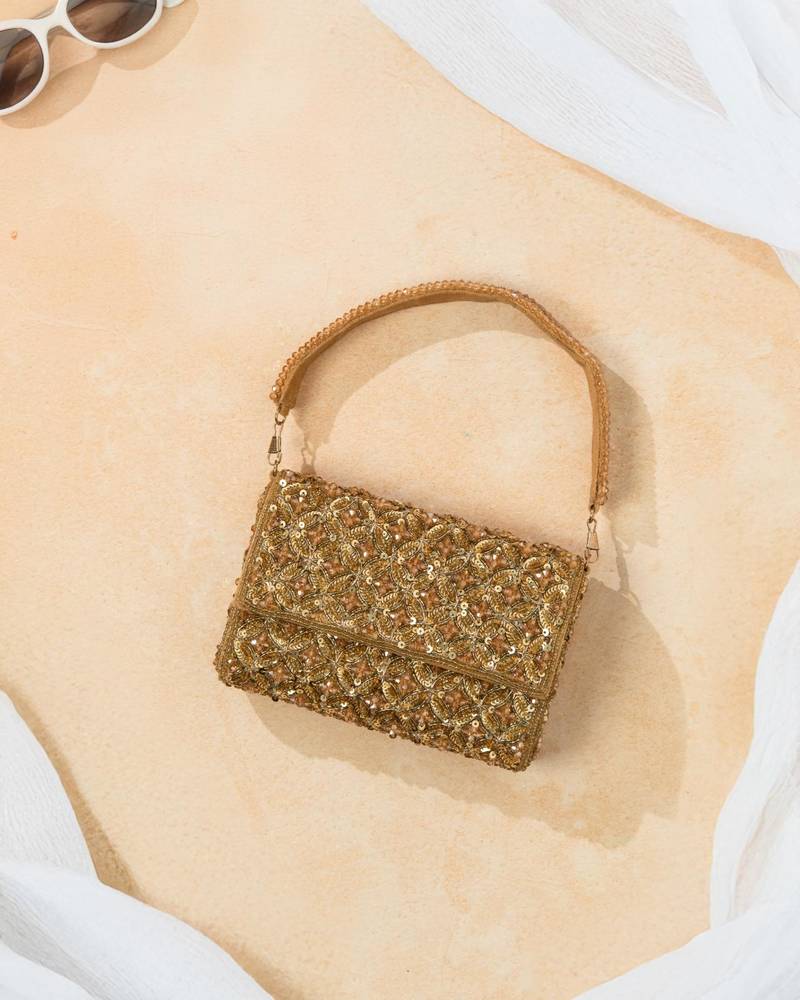 Gold Silk Sequin Embroidered Clutch