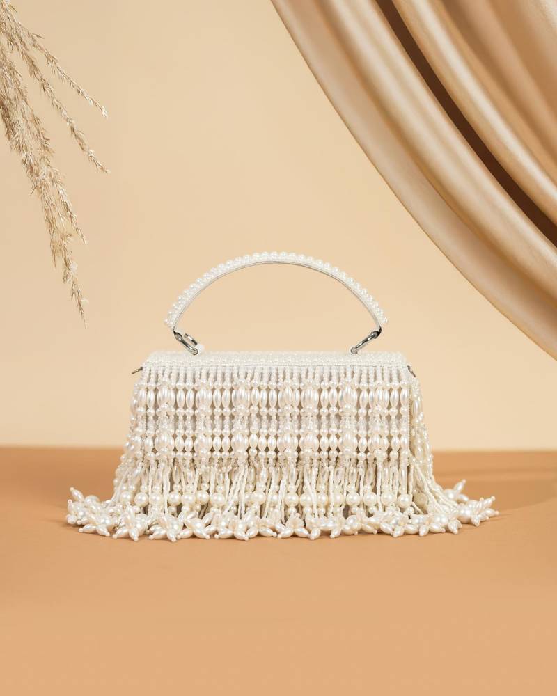 Components: 1 Clutch• Color : White • Material : Silk Other Details