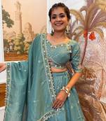 • Style : Circular Lehenga • Fabric : Silk • Work : Embroidered • Color : Sky Blue Blouse Details