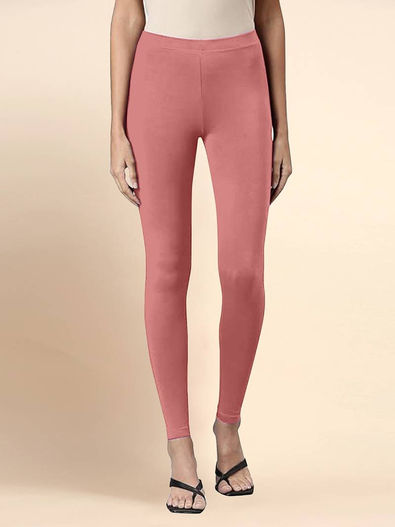 Salmon Pink Microfiber Elastane Stretch Soft Ankle Length Leggings With Ultrasoft Waistband
