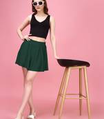 Green Plain Solid Nylon Soft Mini Skirts For Women