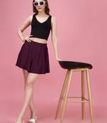 Purple Wine Plain Solid Nylon Soft Mini Skirt For Women