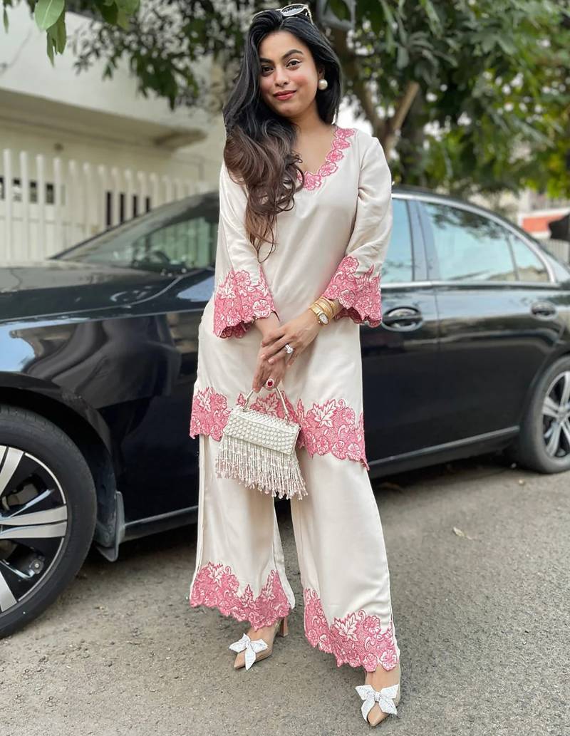 If you find the product for less we'll match it! Know MoreSimple and elegant Kurta Palazzo Set made from soft rayon fabric for comfortable wear. The kurta features subtle floral embroidery-style work on the neckline, sleeves, and hem for a clean look. Paired with matching palazzo pants with coordinated border detailing. Suitable for daily wear, office, and casual occasions.kurta palazzo set, rayon kurta set, embroidered kurta set, floral kurta set, ethnic wear women, daily wear kurta set, office wear kurta, casual kurta set, simple kurta set, elegant kurta set, trendy kurta set, latest design kurta, designer kurta set, straight kurta palazzo, comfortable wear, women kurta set, indian wear, traditional wear, stylish kurta, soft fabric kurta