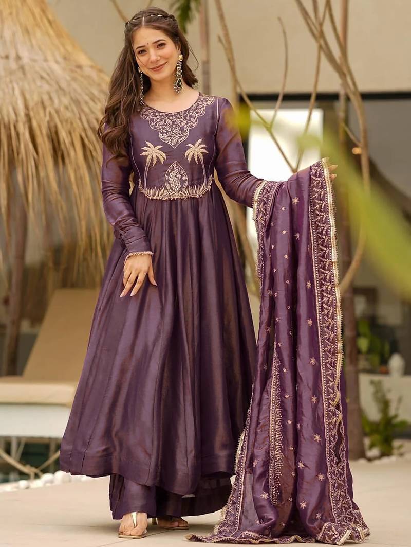 • Product Id : 4754115 • Package Details : 1 Kurta/1 Pant/1 Dupatta • Type : Kurtis • Fabric : Georgette • Work : Embroidered • Type : Zari Work • Look : Fashion • Sleeve : Full Sleeve • Neck Style : Round Neck • Color : Purple • Stitching : Stitched • Length : 48.0 General - Color and Texture may have slight variation. This happens because of photography.