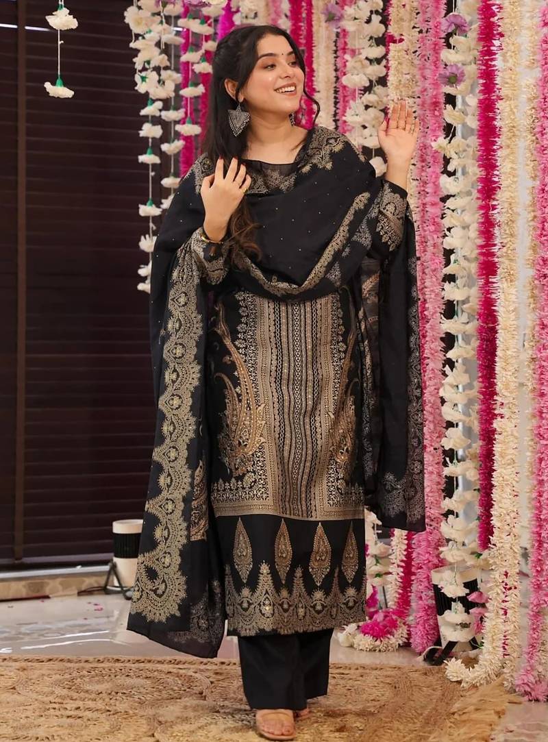 • Product Id : 4704051 • Package Details : 1 Kurta/1 Palazzo/1 Dupatta • Type : Kurta Sets • Fabric : Rayon • Work : Printed • Type : Hand Print • Look : Traditional • Sleeve : Full Sleeve • Neck Style : Round Neck • Color : Black • Stitching : Stitched • Length : 44.0 • Side Slit : Yes Payments [+]