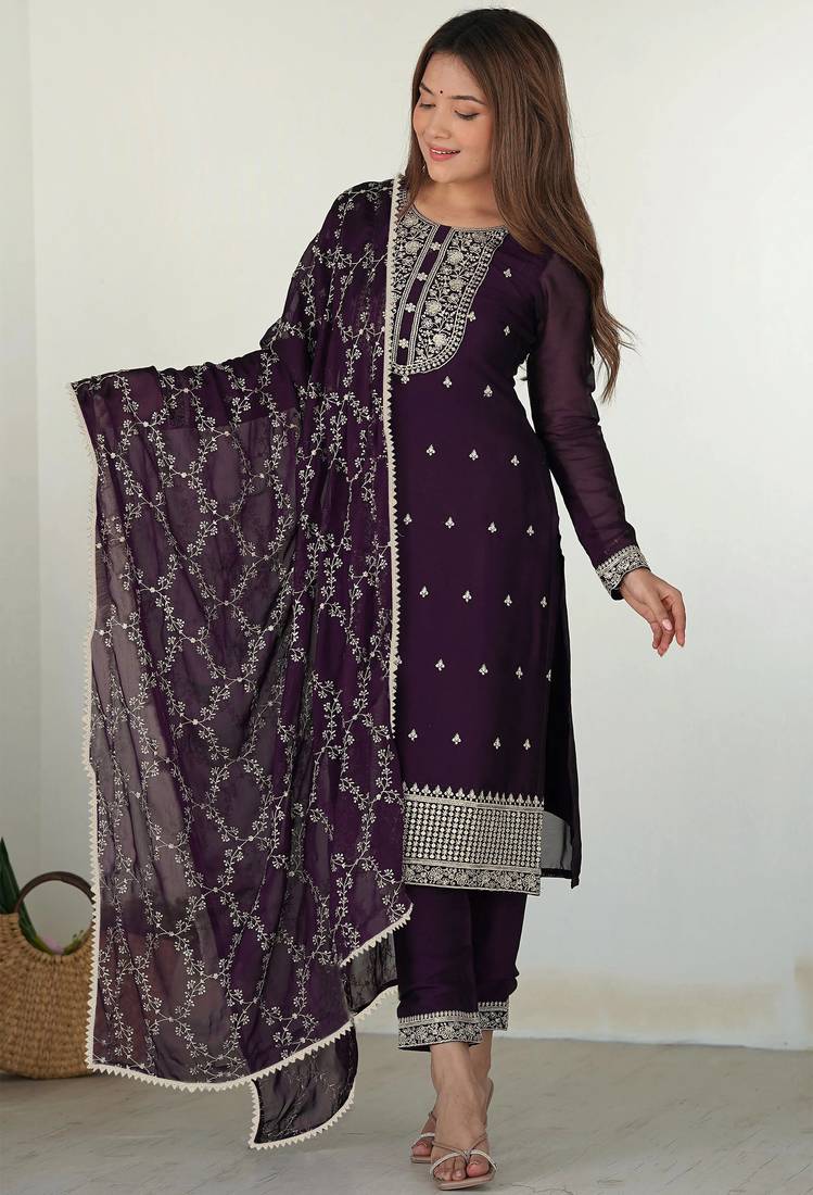 • Product Id : 4698762 • Package Details : 1 Top/1 Bottom/1 Dupatta • Type : Kurta Sets • Fabric : Georgette • Work : Embroidered • Type : Sequins Work • Look : Fashion • Sleeve : Full Sleeve • Neck Style : Round Neck • Color : Wine • Stitching : Stitched • Length : 45.0 • Side Slit : Yes Payments [+]