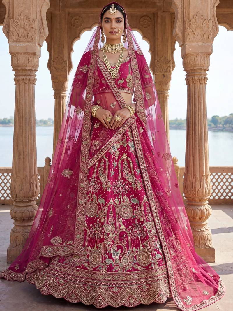 Classic Pink Embroidered Silk Bridal Lehenga Choli With Double Dupatta