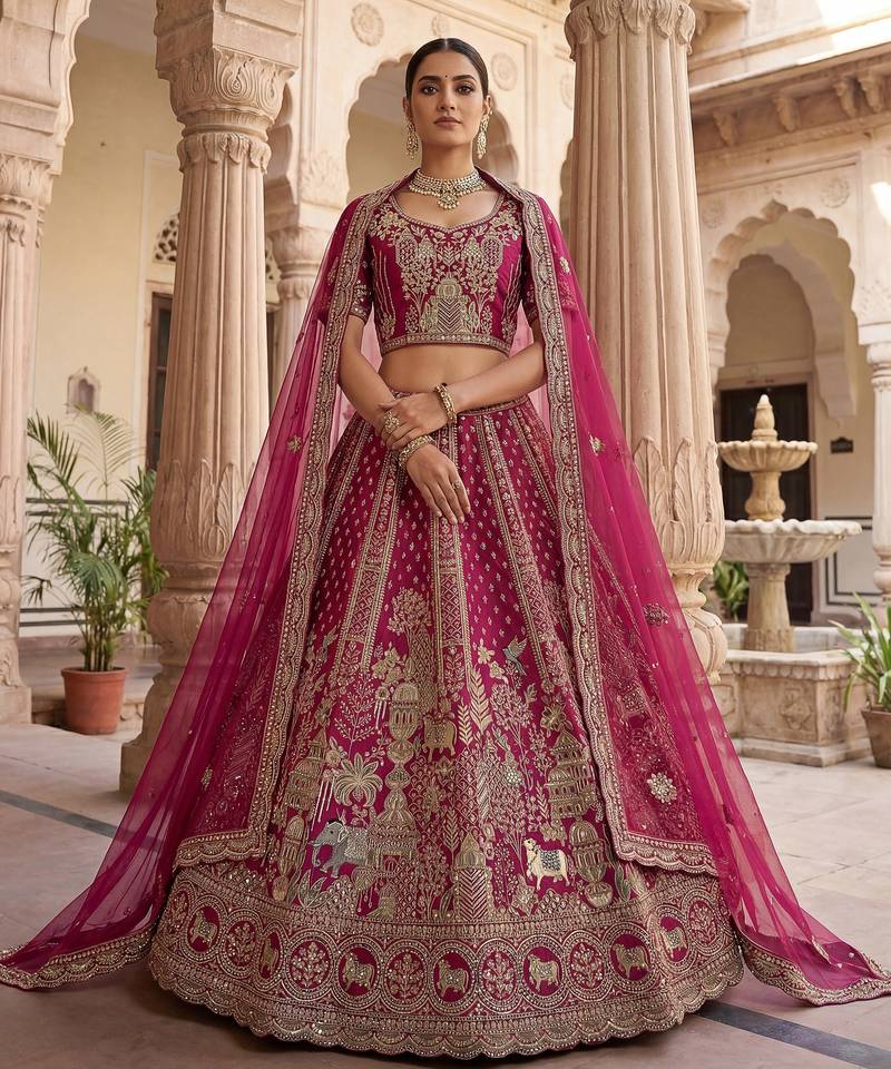$963.0$6,420.0(85% OFF)price changedSelect SizexDazzling Pink Embroidered Silk Bridal Lehenga Choli With Double Dupatta$963.0$6,420.085% OFFSize$963.0$6,420.0(85% OFF)Size$963.0$6,420.0(85% OFF)Product ID : 4704263Estimated Delivery: 10 Mar 2026NEED HELP ?Price Match Promise