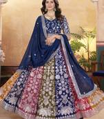 This beautiful set includes a multi-color georgette lehenga with sequin and thread embroidered work, a blue color georgette designer choli with sequin and thread embroidered work, and a blue color georgette dupatta with thread embroidered and sequin with designer lace borderwork.