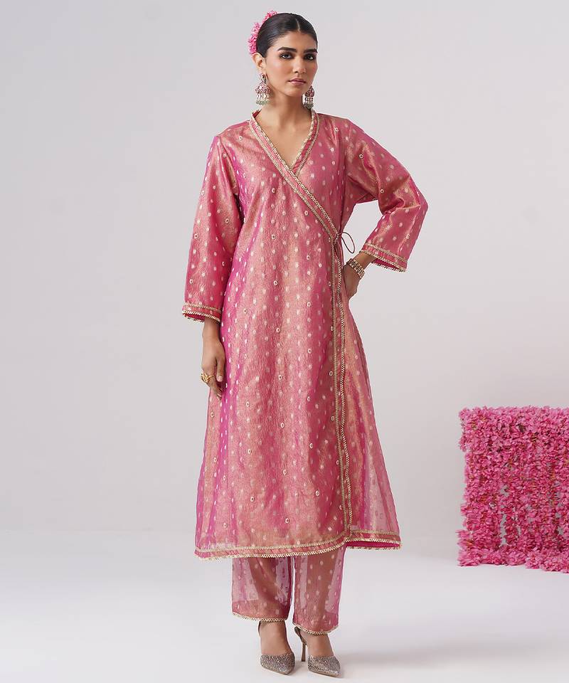 This Pink Embroidered Silk Kurta Set Exudes Graceful Elegance And Festive Charm. Crafted From Rich, Lustrous Silk, It Features Intricate Embroidery That Adds A Refined, Traditional Touch. Perfect For Celebrations And Special Occasions, It Offers A Flattering Silhouette, Luxurious Comfort, And Timeless Ethnic Appeal.