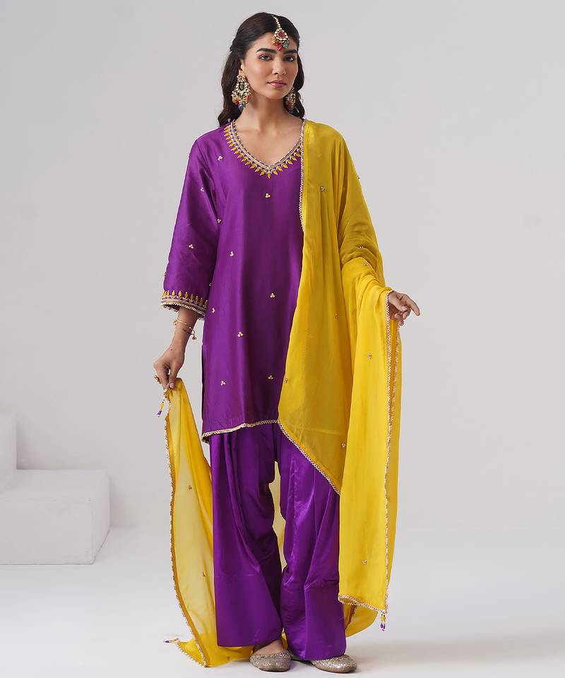 This Purple Embroidered Chanderi Silk Kurta Set Radiates Festive Elegance And Graceful Charm. Crafted From Lightweight, Lustrous Chanderi Silk, It Features Intricate Embroidery That Adds A Refined, Traditional Touch. Perfect For Celebrations And Special Occasions, It Offers Comfort, A Flattering Silhouette, And Timeless Ethnic Appeal.