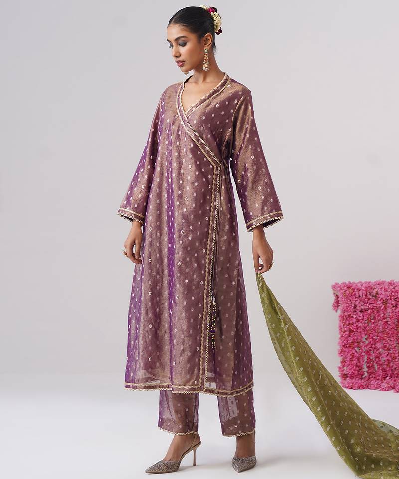 This Purple Embroidered Silk Kurta Set Exudes Graceful Elegance And Festive Charm. Crafted From Rich, Lustrous Silk, It Features Intricate Embroidery That Adds A Refined, Traditional Touch. Perfect For Celebrations And Special Occasions, It Offers A Flattering Silhouette, Luxurious Comfort, And Timeless Ethnic Appeal.