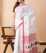 White Handloom Pure Cotton Jamdani And Tassels Saree