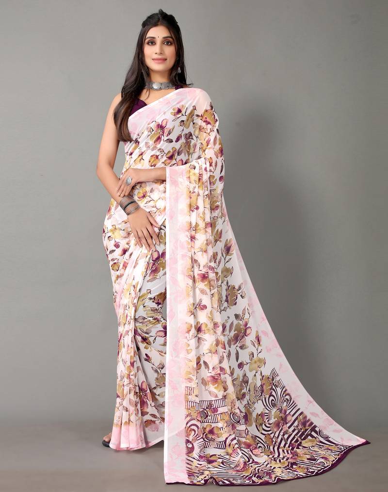Off White Printed Georgette Saree With Blouse