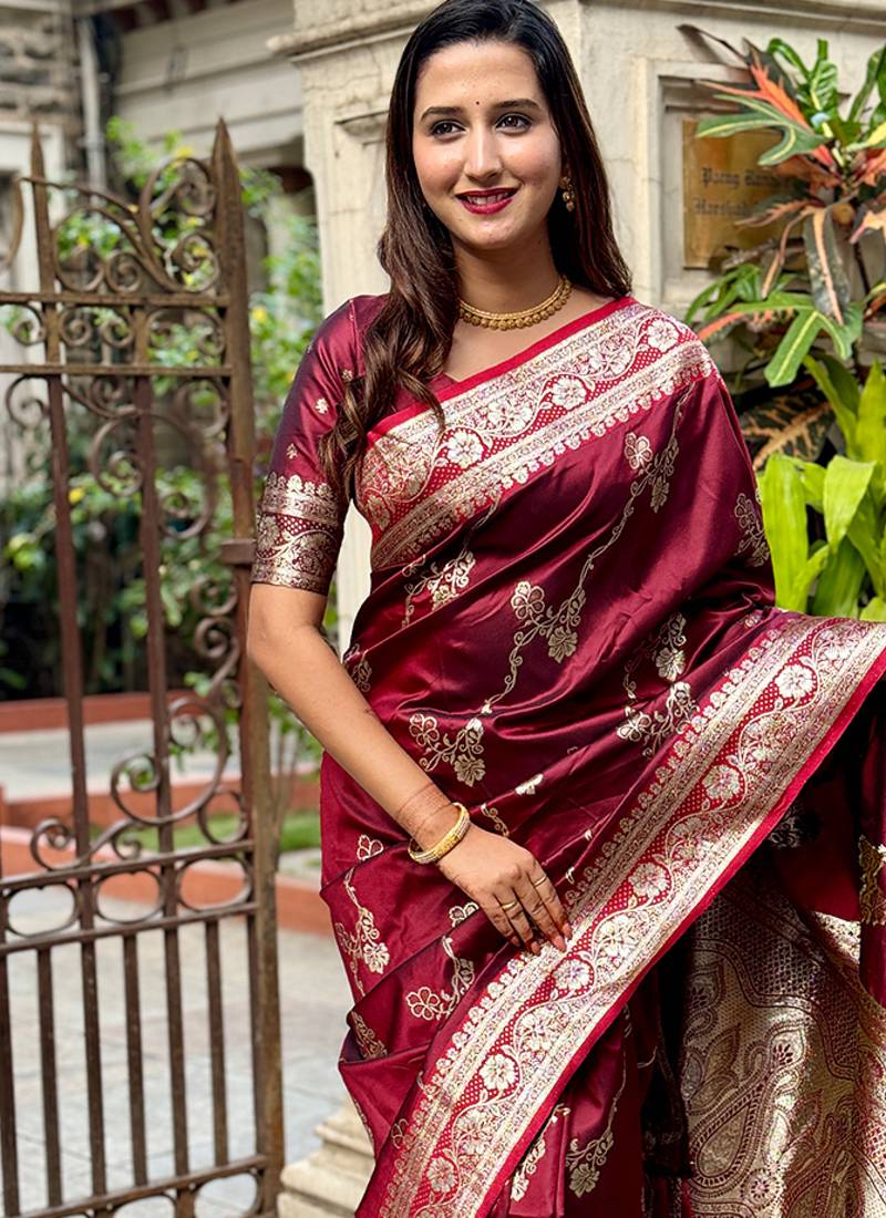 Maroon Woven Self Design Pure Silk Banarasi Saree With Blouse