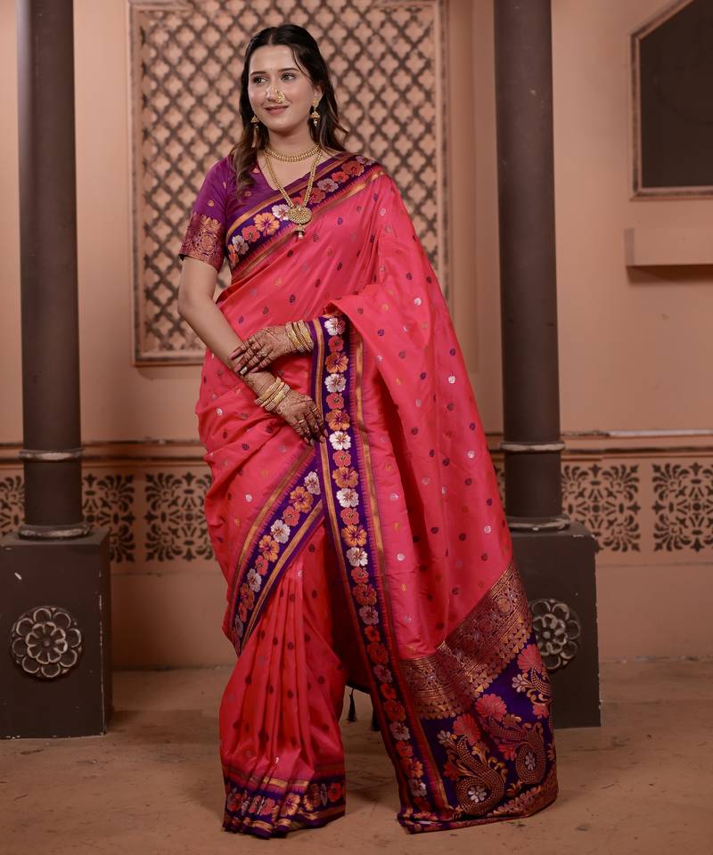 • Product Id : 4754430 • Package Details : 1 Saree/1 Blouse • Type : Paithani Sarees • Occasion : Ceremonial • Work : Woven • Type : Paithani Silk • Look : Traditional • Pallu Style : Contrast Pallu • Stitching : Unstitched • Width : 46 Inches • Length : 5.5 Metres - 5-8 business days in addition to order delivery time.This service is provided to customers outside India only.
