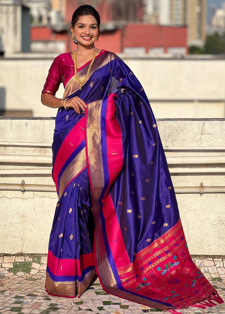 Violet Woven Self Design Pure Silk Paithani Saree With Blouse