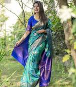 • Color : Teal • Fabric Of : Faux Banarasi Silk • Color : Teal Blouse Details