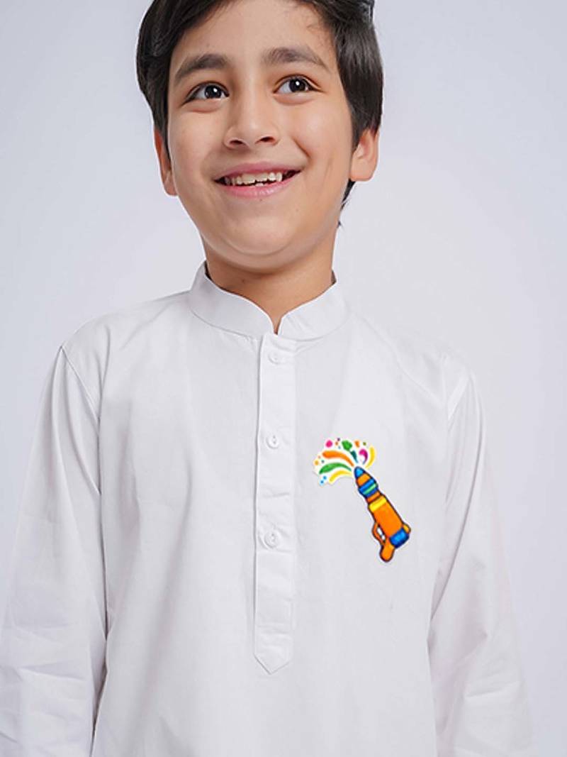 Boys White Pure Cotton Kurta Pyjama Set Holi Special
