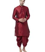 • Product Id : 3935909 • Package Details : 1 Kurta/1 Dhoti • Type : Dhoti Kurta • Work : Plain • Look : Traditional • Sleeve : Full Sleeve • Top Color : Maroon • Top Fabric : Silk Blend • Bottom Style : Dhoti • Stitching : Stitched Payments [+]