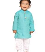 Infant Boys Cyan And White Pure Cotton Kurta Pyjama Set