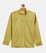 • Product Id : 4465176 • Package Details : 1 Ethnic Shirt • Type : Boys Shirts • Occasion : Casual • Work : Woven • Sleeve : Full Sleeve • Neck Style : Collar Neck Kameez • Top Color : Yellow • Top Fabric : Silk Blend • Stitching : Stitched • Gender : Boy Payments [+]