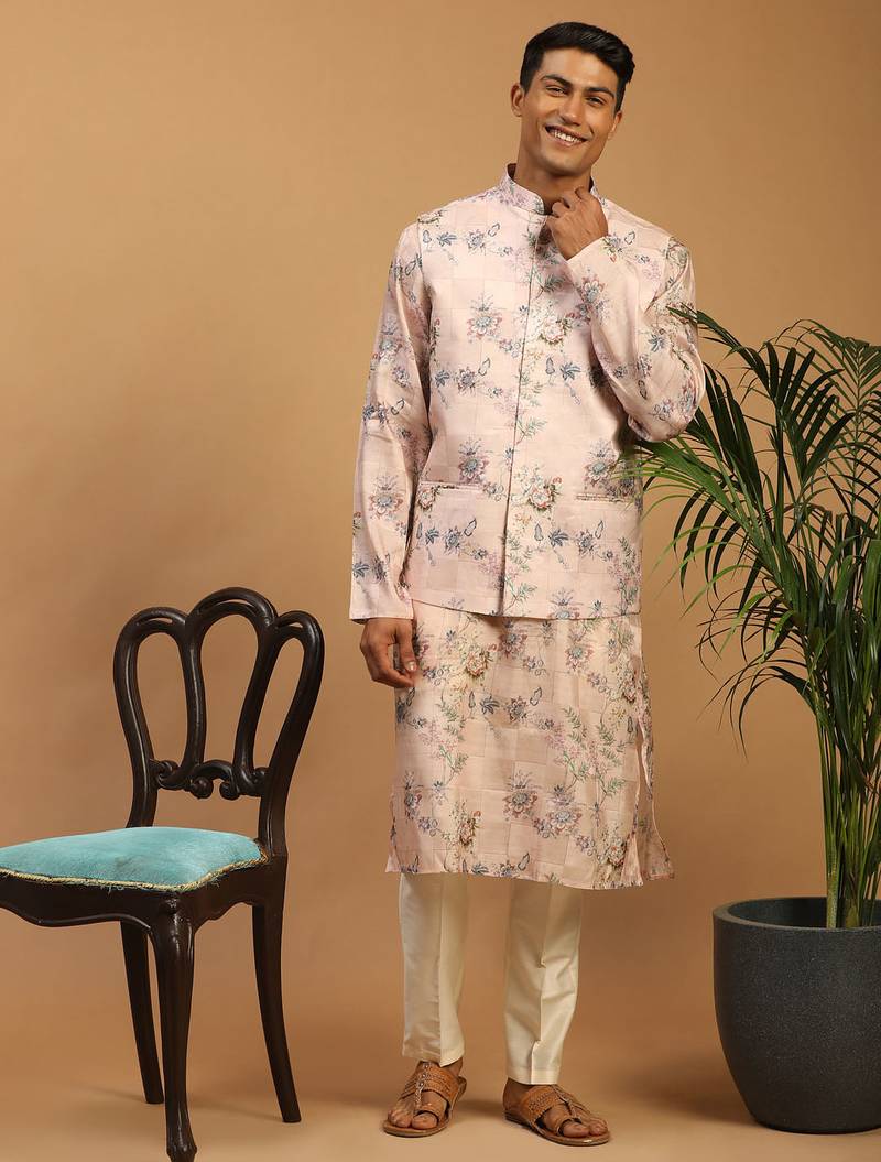 • Product Id : 4707188 • Package Details : 1 Nehru Jacket/1 Kurta/1 Pyjama • Type : Nehru Jacket • Occasion : Casual • Work : Printed • Look : Traditional • Sleeve : Full Sleeve • Color : Pink • Top Color : Pink • Top Fabric : Silk Blend • Stitching : Stitched Payments [+]