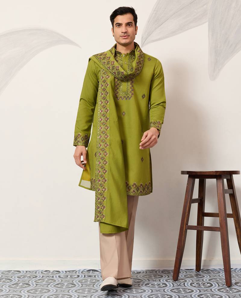 • Product Id : 4695210 • Package Details : 1 Kurta/1 Dupatta • Type : Kurta • Fabric : Viscose • Work : Embroidered • Type : Thread Work • Look : Fashion • Sleeve : Full Sleeve • Neck Style : Band Collar Neck Kameez • Color : Light Olive • Top Color : Green • Top Fabric : Silk,Viscose • Chunari Color : Green • Stitching : Stitched • Chunari Length : 2.4 Meter Payments [+]