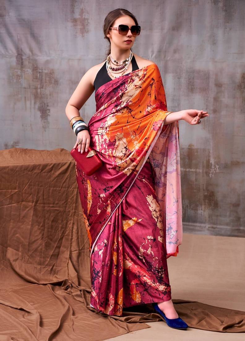 • Border : Borderless • Fabric Of : Satin • Color : Maroon • Color : Maroon Blouse Details