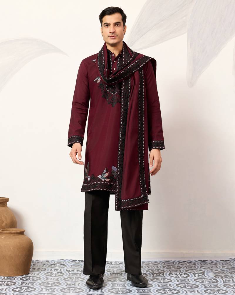 • Product Id : 4694375 • Package Details : 1 Kurta/1 Dupatta • Type : Kurta • Occasion : Wedding • Fabric : Viscose • Work : Embroidered • Type : Thread Work • Look : Designer • Sleeve : Full Sleeve • Neck Style : Band Collar Neck Kameez • Color : Maroon • Top Color : Maroon • Top Fabric : Silk,Viscose • Chunari Fabric : Viscose • Chunari Color : Maroon • Stitching : Stitched • Chunari Length : 2.5 Meter Payments [+]