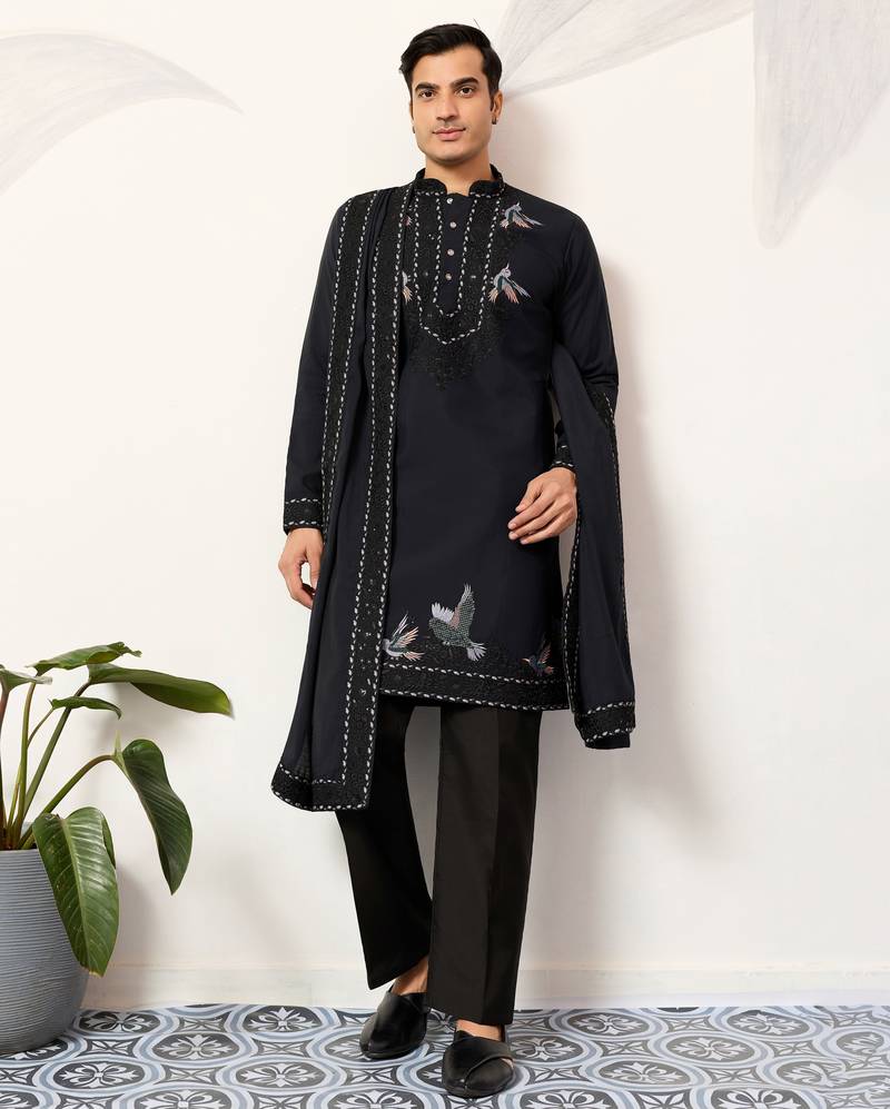 Navy Blue Viscose Silk Thread With Sequence Embroidered Work Kurta & Dupatta