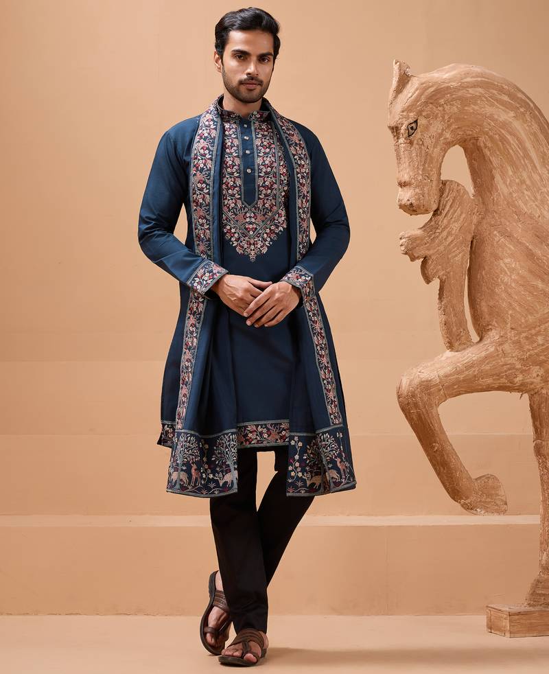 • Product Id : 4694405 • Package Details : 1 Kurta/1 Dupatta • Type : Kurta • Fabric : Viscose • Work : Embroidered • Type : Thread Work • Look : Traditional • Sleeve : Full Sleeve • Neck Style : Band Collar Neck Kameez • Color : Teal • Top Color : Blue • Top Fabric : Silk,Viscose • Chunari Fabric : Viscose • Chunari Color : Blue • Stitching : Stitched • Chunari Length : 2.4 Meter Payments [+]