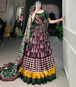 Traditional Printed Tusser Silk Lehenga With Unstitched Choli
