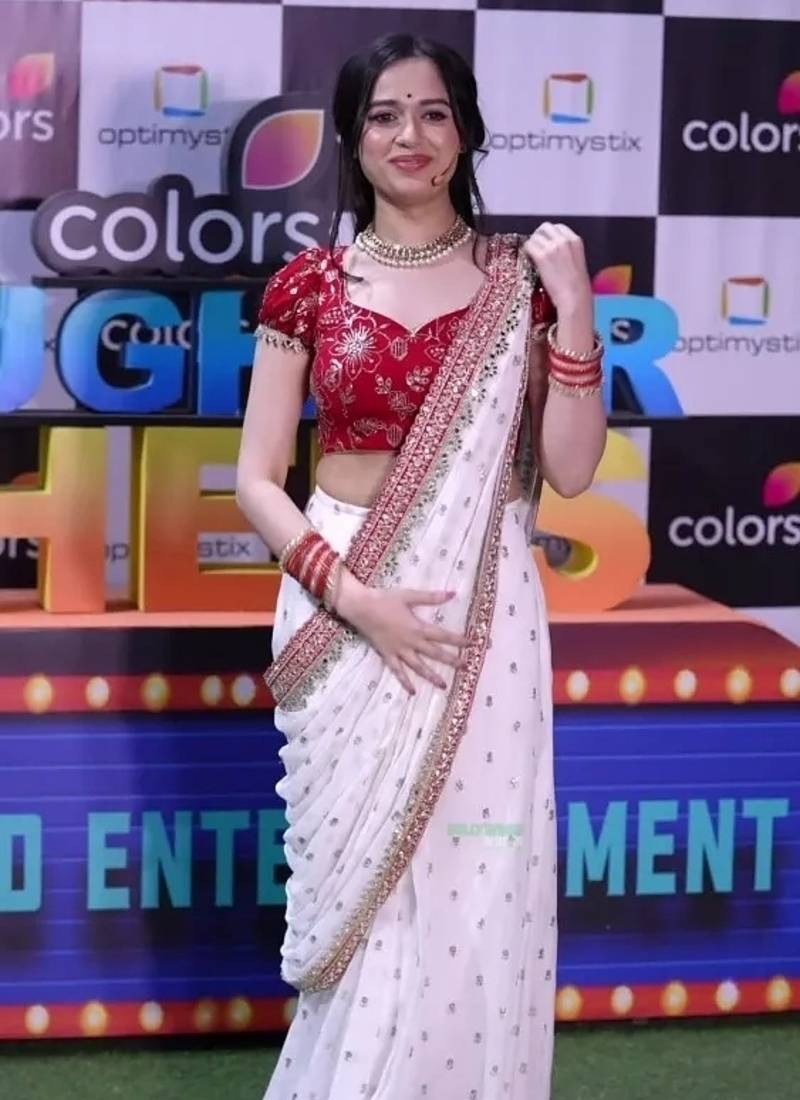 • Saree : Color- White / Fabric- Faux Georgette • Blouse : Color- Red / Fabric- Bangalore Silk Saree Details